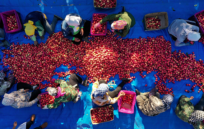 Farmers process apples in Tongliao, Inner Mongolia Autonomous Region. (Photo/Courtesy)