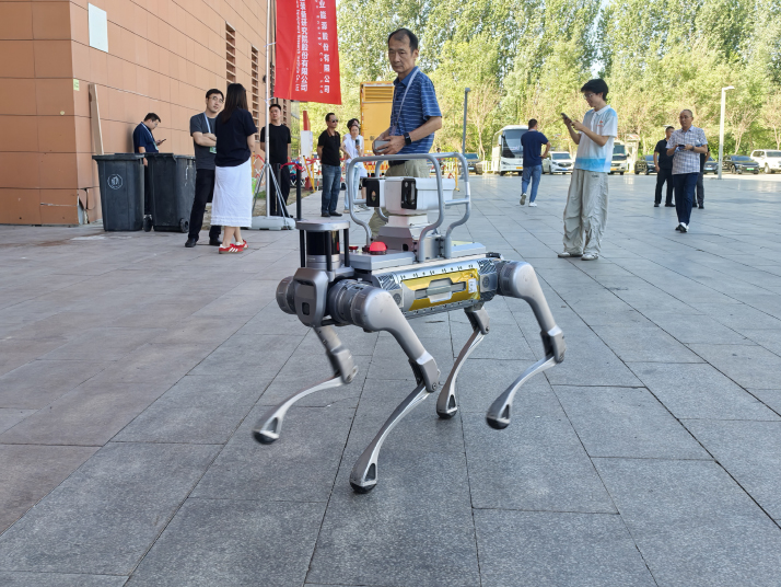 A robot dog suitable for oil and gas production scenarios on display at the Seventh China (Karamay) International Petroleum, Natural Gas, and Petrochemical Technology and Equipment Exhibition in Karamay on Aug. 13, 2025. (Photo/Xinhua)
