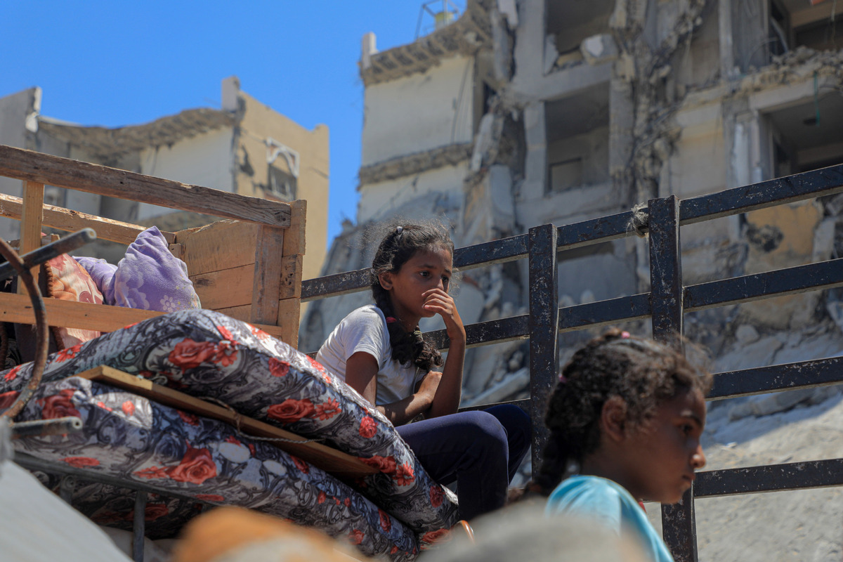 Local people in Khan Younis in the southern Gaza Strip evacuate after Israel issued a warning, Aug. 12, 2024. (Photo/Xinhua)