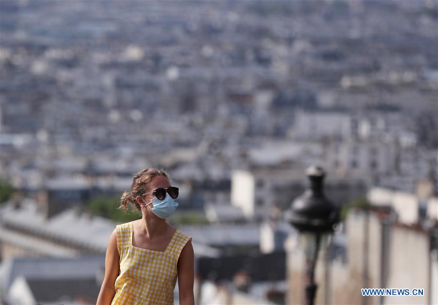 A woman wearing a mask visits the Montmartre in Paris, France, Aug. 10, 2020. (Photo: Xinhua)