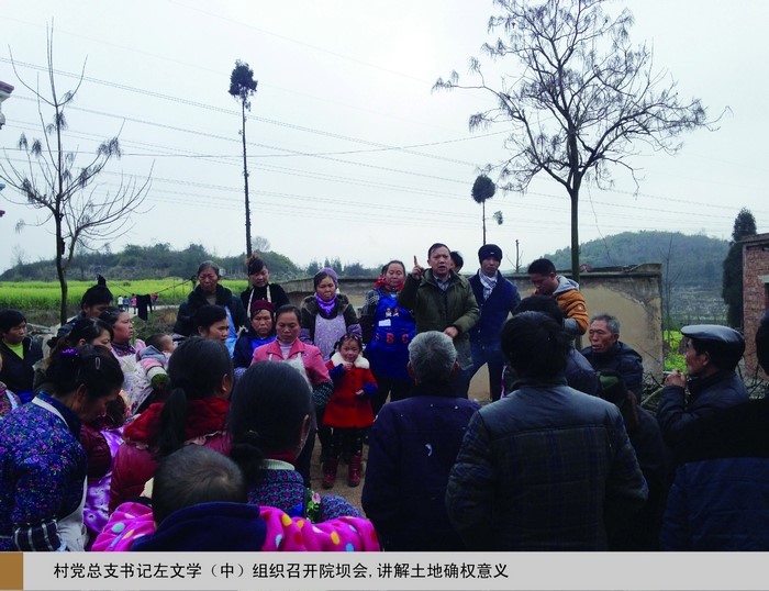 Village Party Branch Secretary Zuo Wenxue holding a courtyard dam meeting, explaining the meaning of land rights.