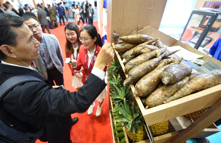 Δ?Visitors browse agricultural products from the Dominican Republic at the China International Import Expo in Shanghai on November 6 (XINHUA)