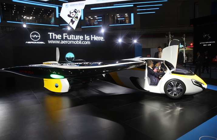 Δ?A flying car made in Slovakia on display at the China International Import Expo in Shanghai on November 5 (XINHUA)