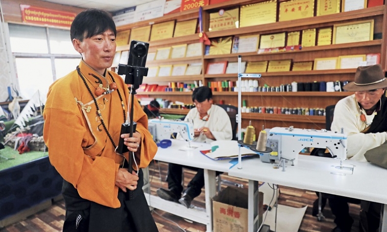 The number of his apprentices has also increased from the initial six to 18, and they earn between RMB 3,000 and 8,000 per month. Ten of his former apprentices, after they finished their stint at the store, have opened their own stores, which are doing well. Buga regards it as a rise in the cultural influence of Tibetan clothes and culture. “Tibetan-style sewing is a traditional skill passed down by our elders. My goal is to promote this skill,” he said.?