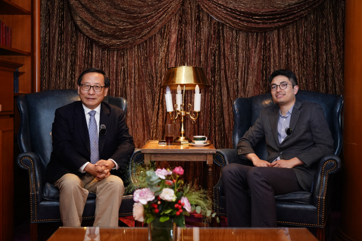 Gao Zhikai (Victor Gao), Vice President of the Center for China and Globalization and former interpreter for Chinese leader Deng Xiaoping, talks with Danny Haiphong, an independent journalist and researcher in the U.S., in Beijing on May 22, 2025. (Photo/Beijing Review)