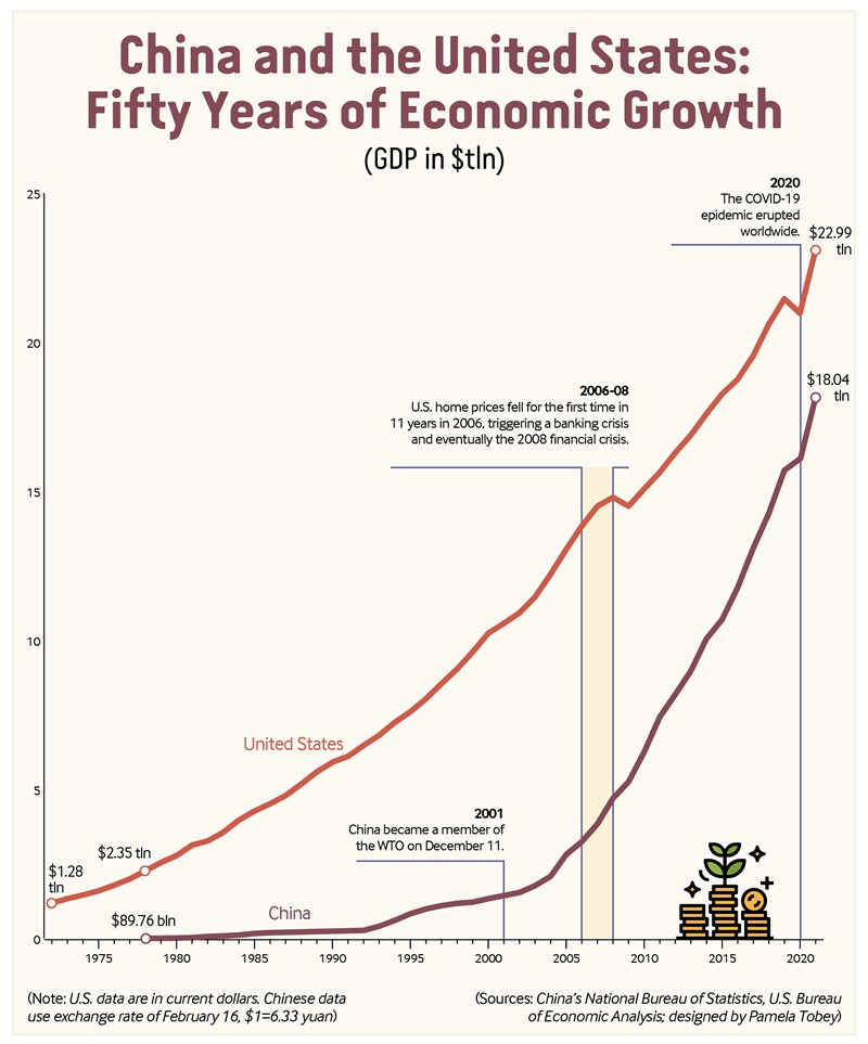 According to the World Bank, China’s GDP growth percentage has remained strong over time. Using the last three “2” years as examples, growth was tagged at 14.2 percent in 1992, 9.1 percent in 2002 and 7.9 percent in 2012. Meanwhile, despite the pressures relating to the pandemic, supply chain issues and the lingering tariffs imposed by the U.S. during Donald Trump’s presidency, growth was pegged at 8.1 percent in 2021. Although analysts differ on the year it will happen, the expectation remains China will overtake the U.S. and become the world’s leading economy in the next 10 years.