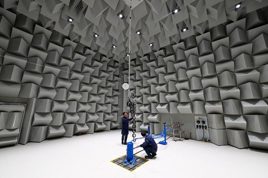 This photo taken on May 10, 2023 shows staff members working at a testing room at the Danfoss Global Green Refrigerants Compressors Laboratory in Tianjin, north China. (Photo/Xinhua)