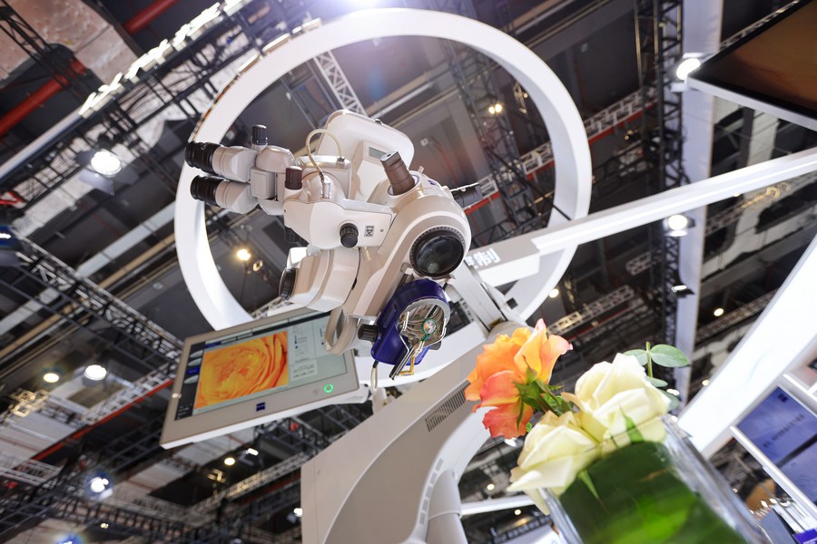 This photo taken on Nov. 6, 2022 shows a digital microscope for ophthalmic surgery at the booth of German optical giant Zeiss during the fifth China International Import Expo (CIIE) in east China’s Shanghai. (Photo/Xinhua)