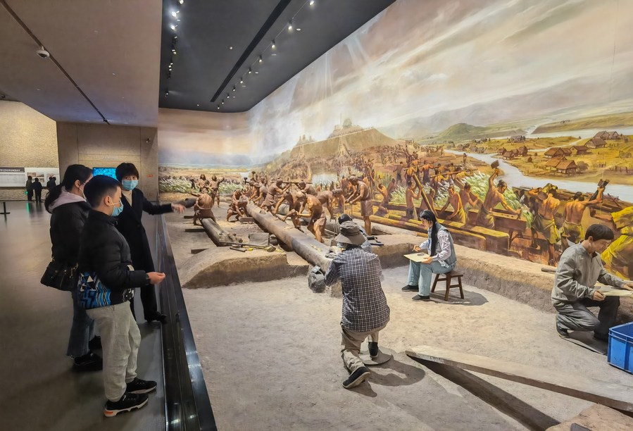 People visit the Liangzhu Museum in Yuhang District of Hangzhou, capital of east China’s Zhejiang Province, Mar. 4, 2023. (Photo/Xinhua)
