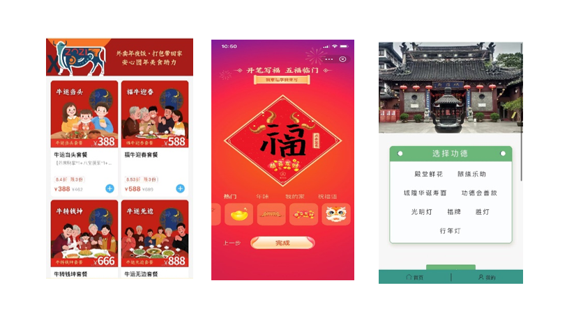 Online platforms are helping Chinese families celebrate Spring Festival, including ordering banquets, creating Spring Couplets and online worship.