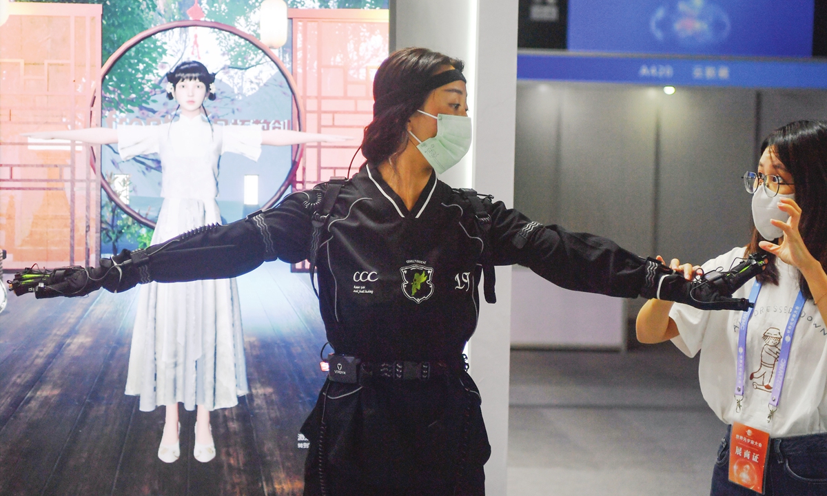 A visitor interacts with the virtual figure Banzhao at the 2022 World Metaverse Conference. (Photo/IC)