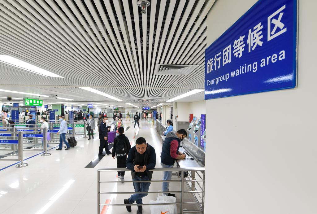 Tourists are seen at the entry inspection hall of Luohu Port in Shenzhen, south China’s Guangdong Province, on Mar. 15, 2023. (Photo/Xinhua)