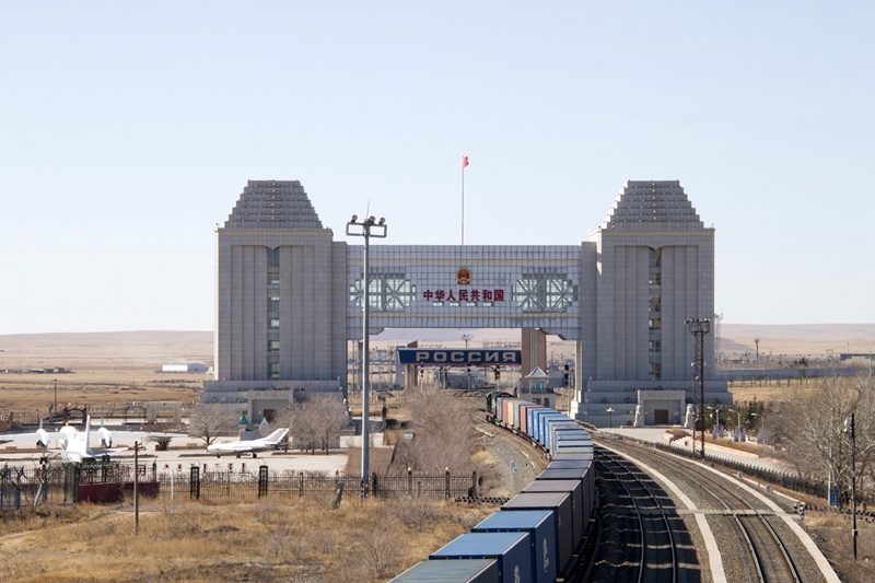 A China-Europe freight train passes through the border gate in Manzhouli, Inner Mongolia Autonomous Region of China, on Apr. 13. (Photo/Xinhua)