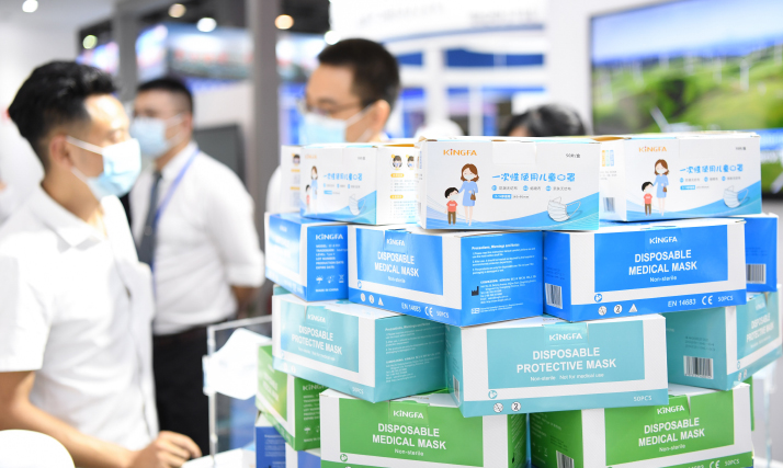 Masks on display at the Guangzhou International Medical Protective Supplies Fair in Guangzhou, Guangdong Province in south China, on June 10 (XINHUA)