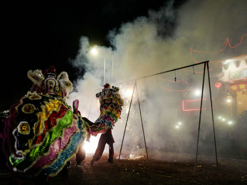 When they wake up in the morning of Feb 16th, they must immediately go outside and set off firecrackers. Families greet each other and eat Chinese dates, eggs, and long life noodles before going to visit the elder members.