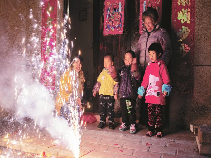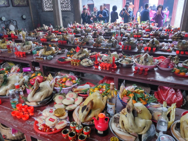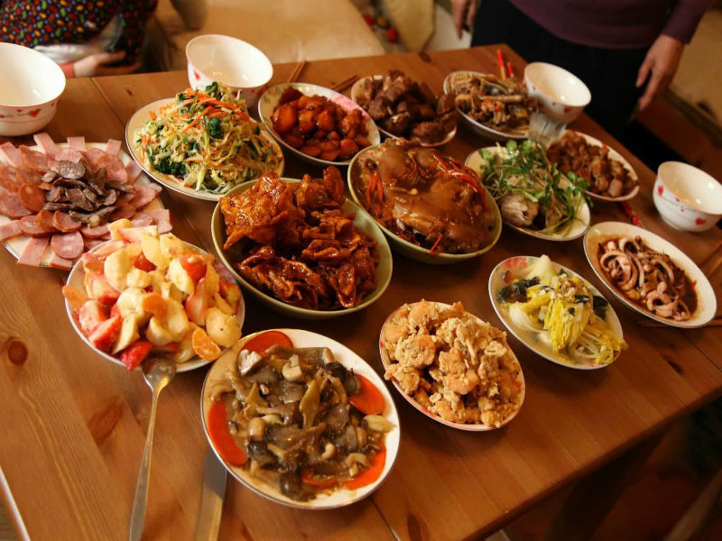 In Anhui province, the dinner on New Year’s Eve is considered the most important one, and people there must set off fire crackers and pay their respects to their ancestors before eating anything. The worship ritual is quite strict – youngsters should eat first, and there must be ten dishes including chicken and fish.