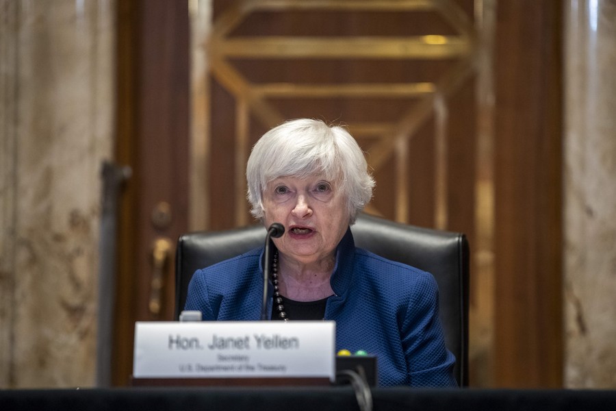 U.S. Treasury Secretary Janet Yellen testifies during a Senate Appropriations Subcommittee hearing of Fiscal Year 2022 Budget for the Department of the Treasury on Capitol Hill in Washington, D.C., the United States, on June 23, 2021. (Photo/Xinhua)