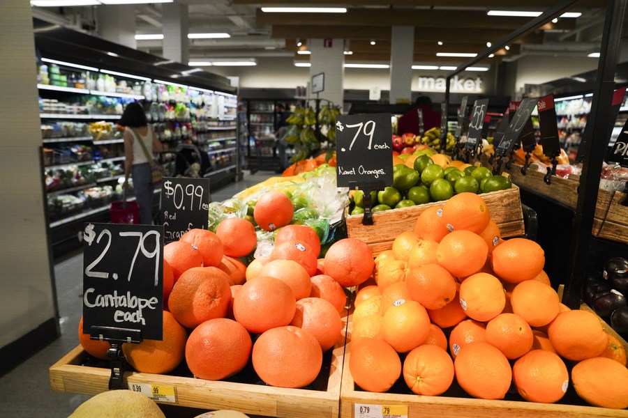 A customer selects goods at a supermarket in New York, the United States, Aug. 11, 2021. (Photo/Xinhua)